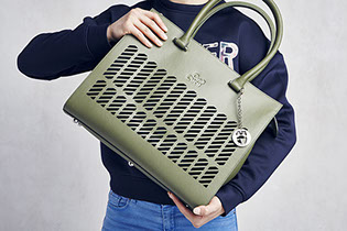 Bitte niemals Alkohol, Parfum oder Waschmittel zur Reinigung der Tasche verwenden.